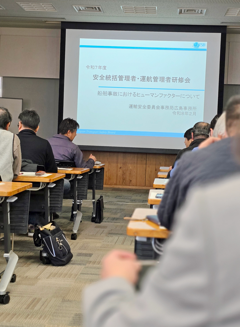 2月13日四国運輸局が開催する「令和7年度安全統括管理者・運航管理者研修会」に午後から半日参加してきました。この会議は旅客船事業者・内航海運事業者の安全運航に必要な専門的な知識等の研修で四国は松山と高松の2か所で開催されました。